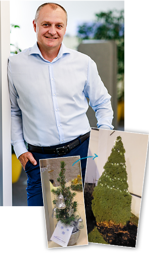 Fotky těchto dvou stromečků nedávno poslal jeden z klientů našemu kolegovi v Business Lease. Ten menší od něj dostal jako vánoční dárek někdy na začátku spolupráce před téměř 15 lety. Ten druhý roste na klientově zahradě – a ano, je to ten samý tehdy zasazený stromek. Klient nám zůstal věrný a spolupracuje s námi už ve čtvrté firmě.